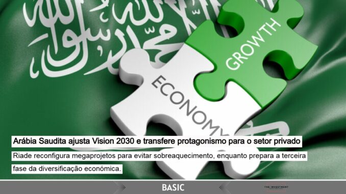 - O governo saudita está a transferir o escopo de alguns projetos do Vision 2030 para o setor privado, numa fase de reconfiguração estratégica do programa.