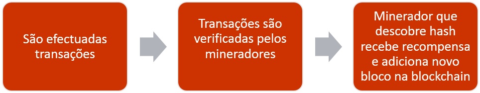 Portanto a ação de mineração é um processo que requer poder computacional que leva à resolução daquele enigma único para criar a entrada do bloco seguinte. Assim asseguram e validam a blockchain.