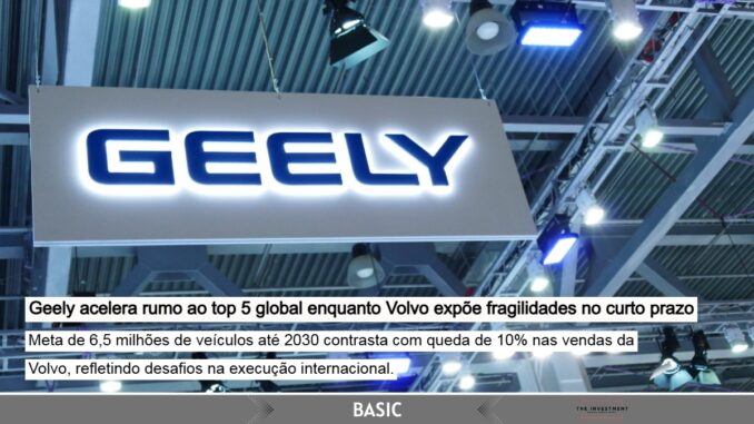 Geely acelera ambição global para 2030, enquanto o ecossistema Volvo evidencia pressão de curto prazo