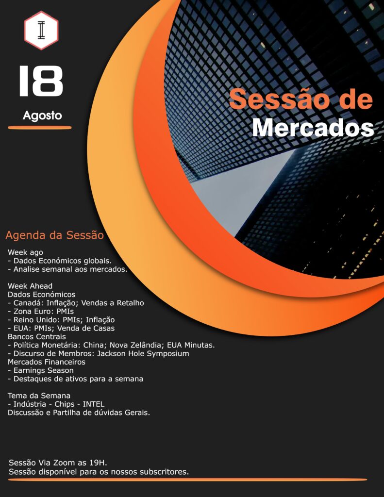 Sessão de Mercados de 18 Ago 25, das 19H – 20H. Venha descobrir os eventos de economia e mercados para a semana, assim como conhecer o tema da semana escolhido pelos nossos utilizadores. Aqui partilhamos a nossa visão e discutimos opiniões.